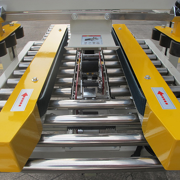 3、胶带封箱机两侧马达驱动皮带,适合较窄纸箱。