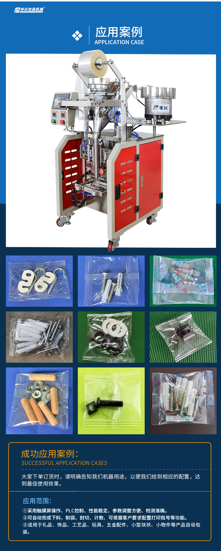 在五金、电子、医疗器械、食品等众多行业中,当面临产品品种固定,但生产批量巨大的场景时,这款包装机的优势就愈发凸显。它的包装速度快,能有效提高生产效率;而且经济实用,能为企业节省成本。无疑,它是批量包装小件规则固态产品的理想之选。
