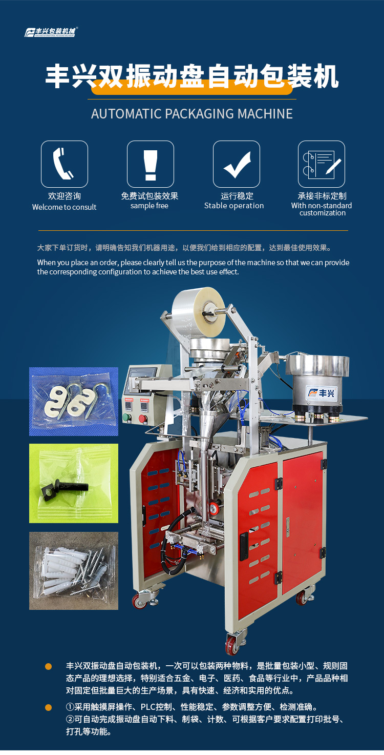 还在为小件产品的包装问题而烦恼吗?别愁啦!丰兴单个振动盘自动包装机来帮您!这可是一款应用极为广泛的自动化设备,它专门针对小件物品,以及各种规则或特定设计的五金、塑料配件等进行精心打造。